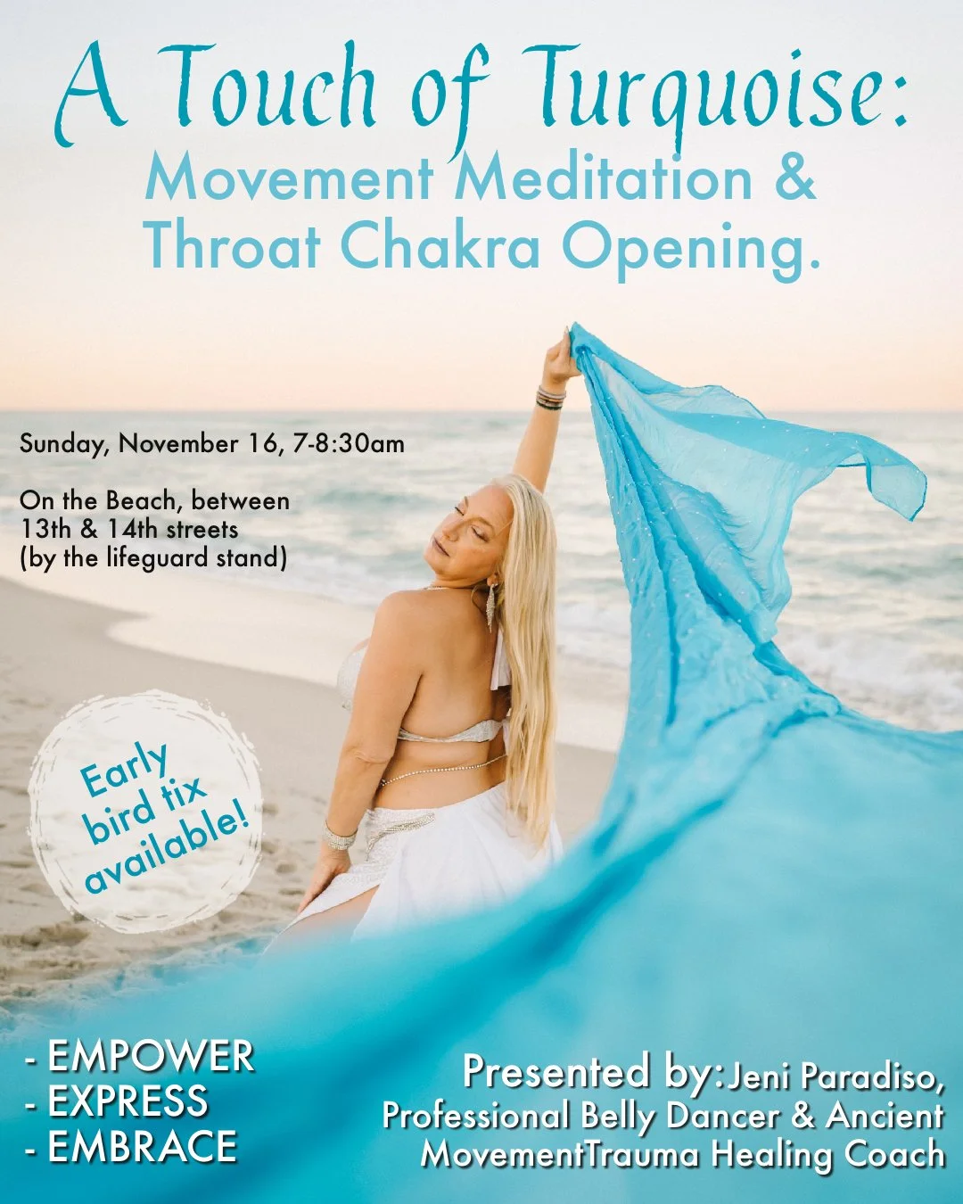 Join us for the very first of a monthly movement meditation event combining somatic release and healing ractices derived from belly dance, activating our unique voices through expression and clearing any stuck energy in the throat chakra, or Vishuddah Chakrah.